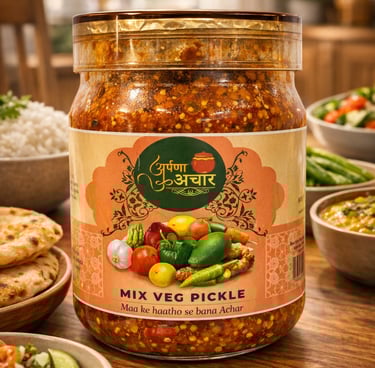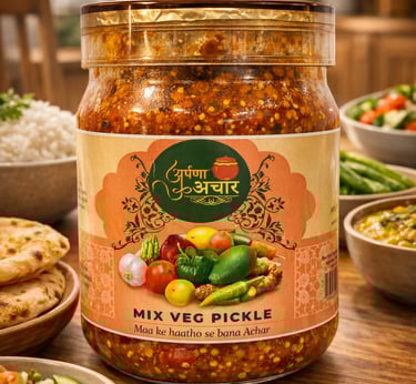 अर्पणा अचार में हमारा मिशन है हर घर तक पारंपरिक भारतीय अचार का असली स्वाद पहुँचाना। हम पुराने समय की रेसिपी को संजोकर, उच्च गुणवत्ता वाली सामग्री और मसालों के सही संतुलन के साथ हर अचार तैयार करते हैं, जिससे आपको घर जैसा स्वाद मिले।